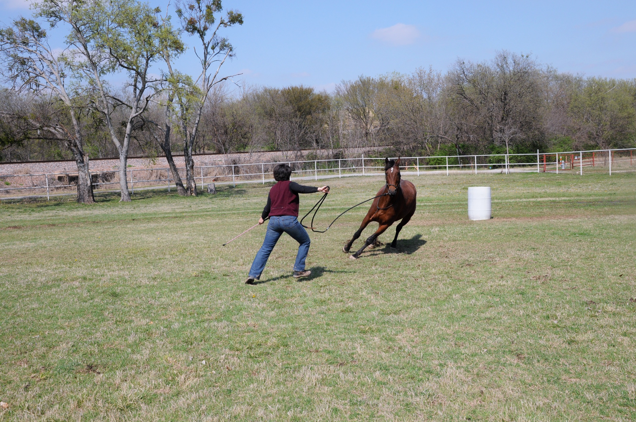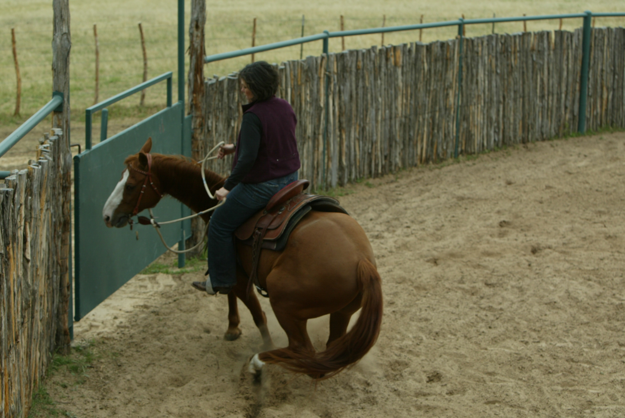Pilates for sure, for the core work that makes a HUGE difference in my posture alignment and riding “lighter” (even though I’m not!) and with better, more natural feeling balance. Yoga is another favorite because it emphasizes breathing and helps meld strength and flexibility, both of which help me to relax more as I ride, but still have the strength and stamina to be effective in the saddle — and in my barn chores! I love to incorporate my daily “steps” into groundwork with my horses, and even run a little bit beside my horses on occasion; this is not only good exercise for me, it is very good bonding with my boys!