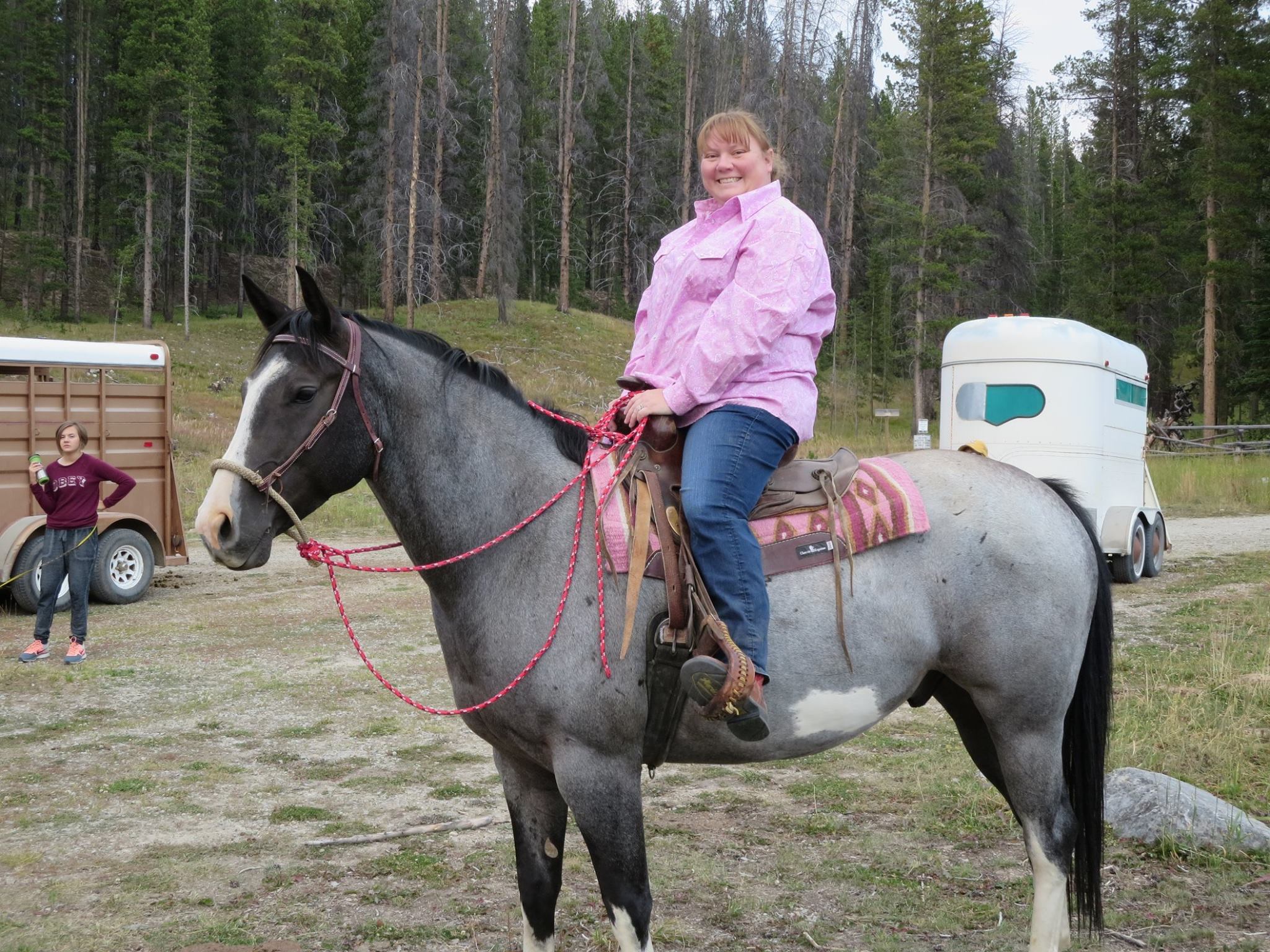 At this stage in my life, I want to find a good companion horse and start enjoying riding again!  I don’t have to compete but I want to spend the day riding with my daughter and mother (we still all ride together when we can).  I realize my weight is a huge obstacle to my confidence in the saddle.  I started the gym the first of February and I hope to get a nice trail horse this spring but my budget is limited.  I am really enjoying being a rodeo/ horse show mom and I hope my daughter can take it steps further than I ever did.