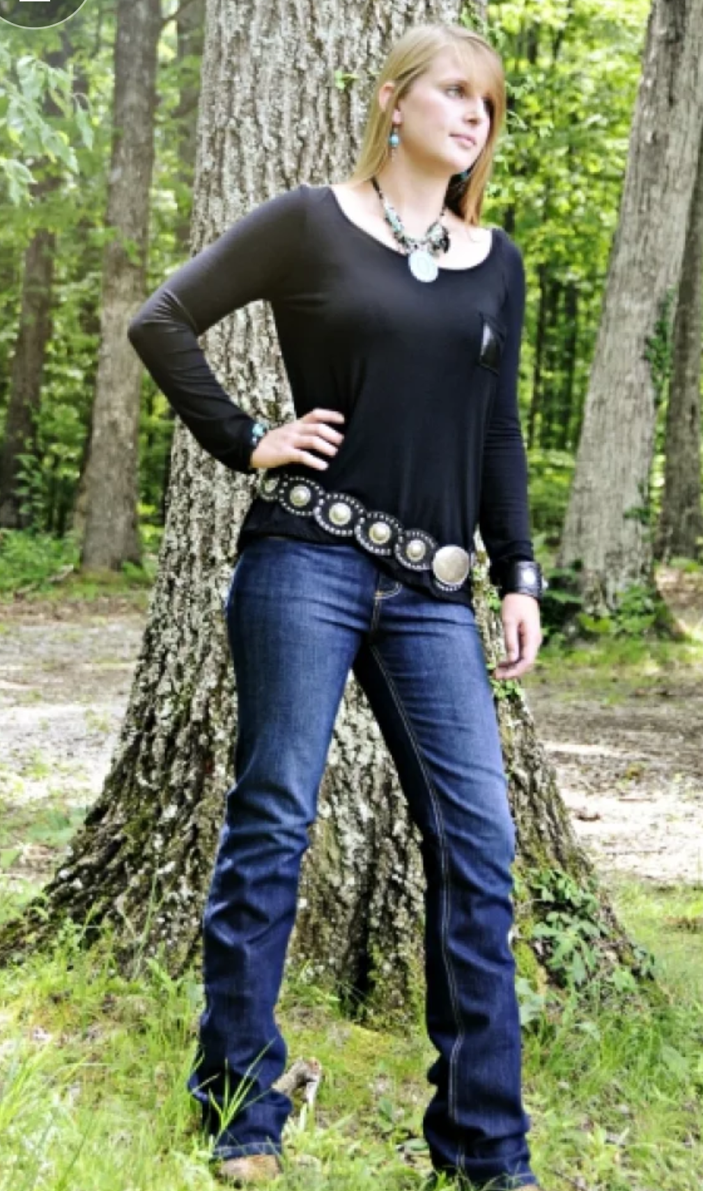 Hands down it would be our Bullet Blues Bombshell Jeans. They are made in the USA which means they will last. Most jeans nowadays are extremely thin and wear in the seat rather quickly. One of our Ambassadors, has worn hers for over a year at dang near every barrel race and they have yet to breakdown in the seat or inner thigh which are the two hot spots for can chasers. They are durable and yet giving in the places that a rider would need.